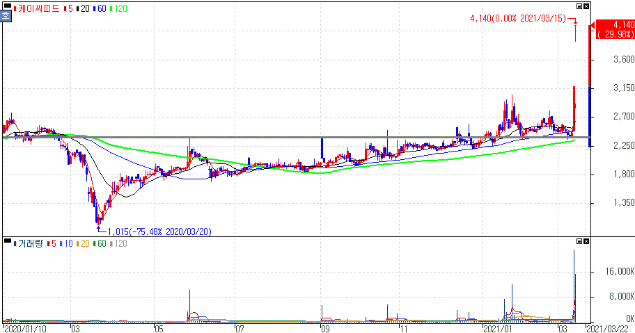 마켓컬리 美 상장 추진에 따른 수혜 기대감 지속 등에 상한가를 기록한 케이씨피드 주가 입니다.