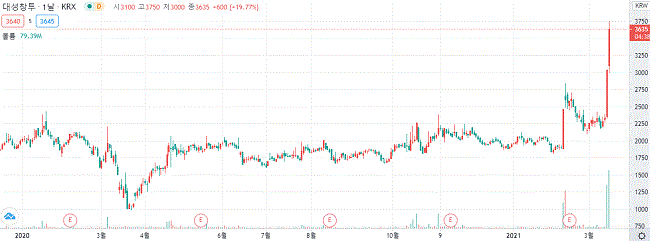 대성창투가 두나무 홈페이지 투자사 목록에 있다는 이유로 함께 편입되어 있습니다. 대성창투는 크래프톤 IPO 기대감으로 크래프톤 관련주로도 부각을 받아 연속 강세를 보여주고 있습니다.