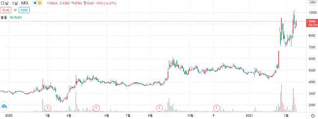 두나무 업비트와 카카오의 관계는 뗄레야 뗄 수 없는 관계 입니다. 다만 카카오 시가총액이 약 42조에 달하다보니 중단기적으로 보는 투자자들은 피하는 경향이 있습니다.