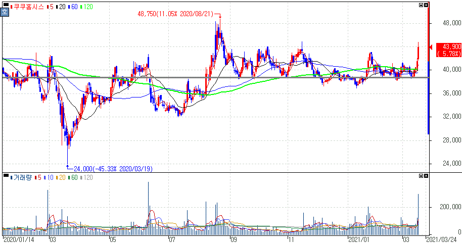 쿠쿠홈시스는 과거 쿠쿠전자에서 렌탈사업부문이 분할해 재상장됐었죠. 주로 공기청정기와 같은 생활가전을 렌탈하는 사업을 영위하면서 공기청정제습기까지 출시한 업체입니다.