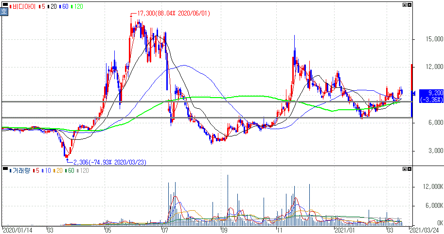 비디아이는 화력발전소의 친환경 설비 등 보조기기 설계나 제작을 하는데 미세먼지를 거르는 탈황설비와 전기집진기 제품을 생산하면서 미세먼지 관련주로 편입되어 있습니다. 그런데 지난해 영업이익을 적자전환 했죠.