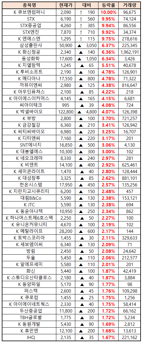 시간외 단일가매매 종가 종목 확인시 단순 급등주 등락률만 볼 것이 아니라, '거래량'에 따르는 거래대금도 판단하면서 보는 것이 중요합니다.