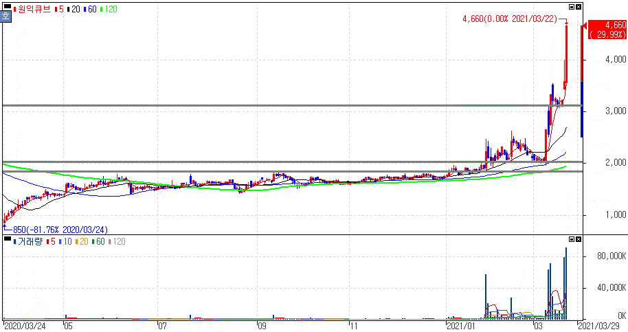 윤석열 전 검찰총장, 대선 지지율 1위 소식 속 상한가를 기록한 원익큐브, 에프앤가이드, 승일 주가 입니다.