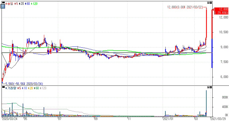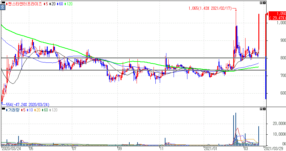 당장 과열양상을 보이면서 단기간 가파른 상승중인 종목보다는 며칠에서 몇주까지 수급과 흐름양상을 본 종목들이 금일 두종목의 상한가를 기록했습니다. 팬스타엔터프라이즈와 승일인데 종목추천이 아니라, 상한가를 기록하게 된 흐름을 공부하시는데 도움이 되실거라 봅니다.