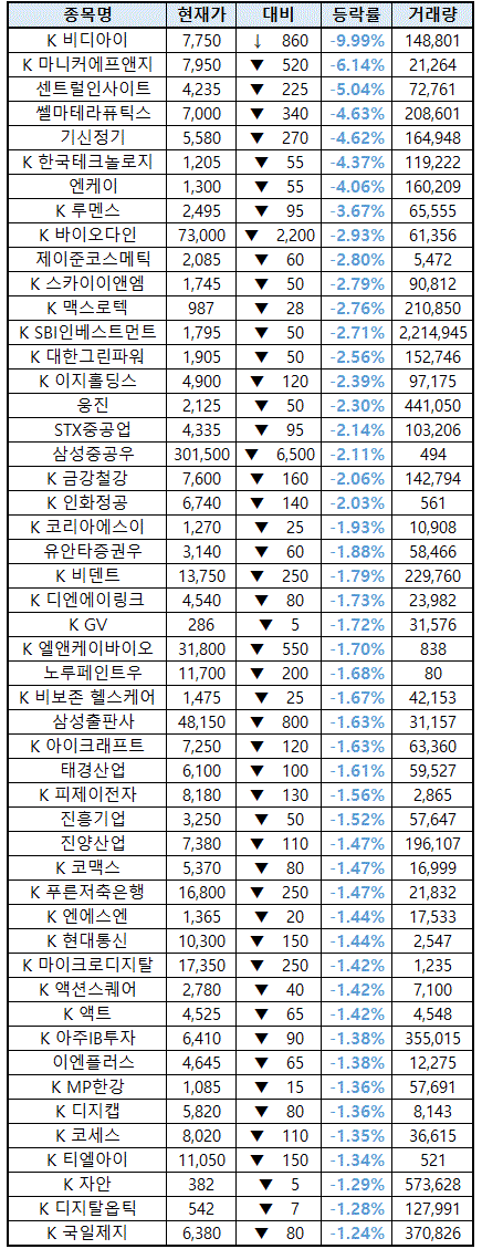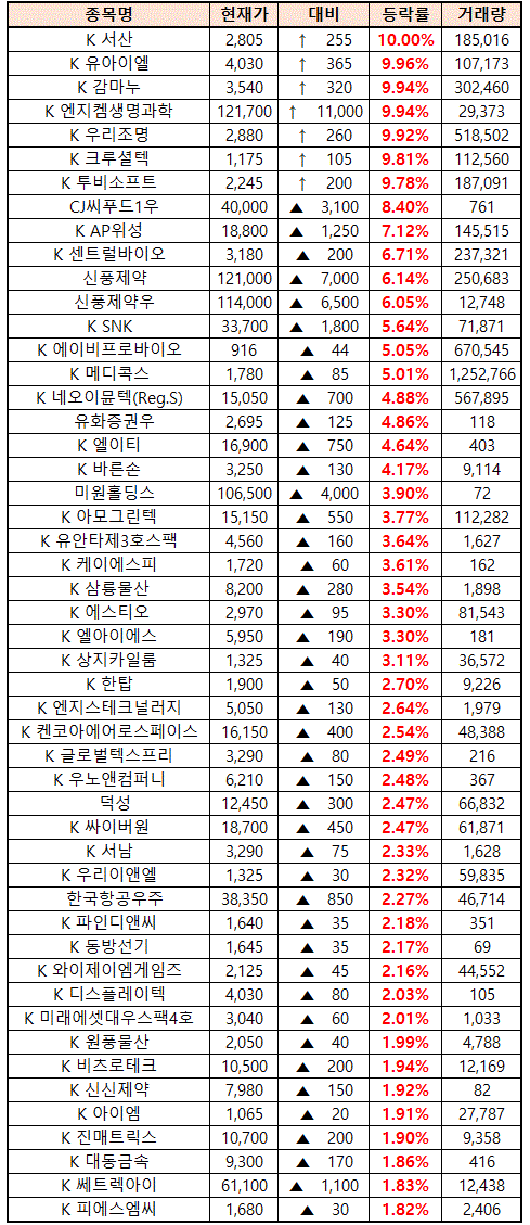 시간외 단일가매매 종가 종목 확인시 단순 급등주 등락률만 볼 것이 아니라, '거래량'에 따르는 거래대금도 판단하면서 보는 것이 중요합니다.