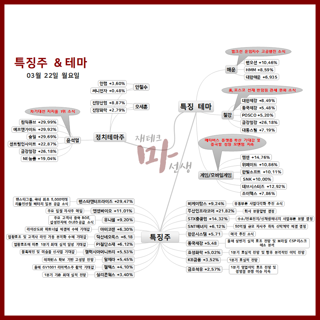 3월 22일 오늘의 상한가 종목 및 이유 :: 한국석유 에프앤가이드 승일 팬스타엔터프라이즈 주가