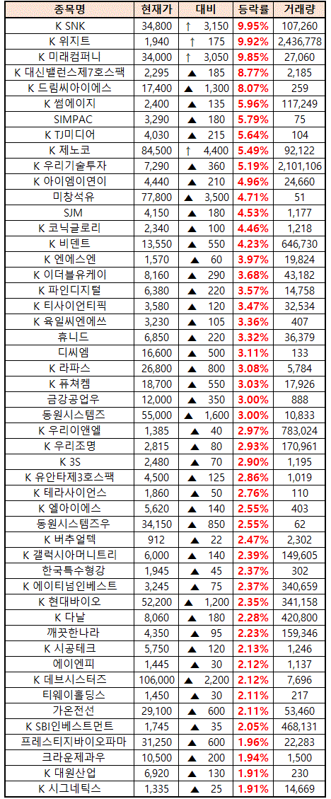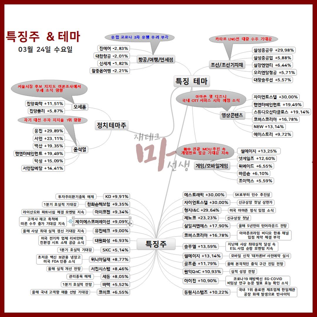 2021년 03월 24일 시간외 상한가 상승종목 및 이유 :: 위지트 썸에이지 우리기술투자 SNK 주가 외 특징주