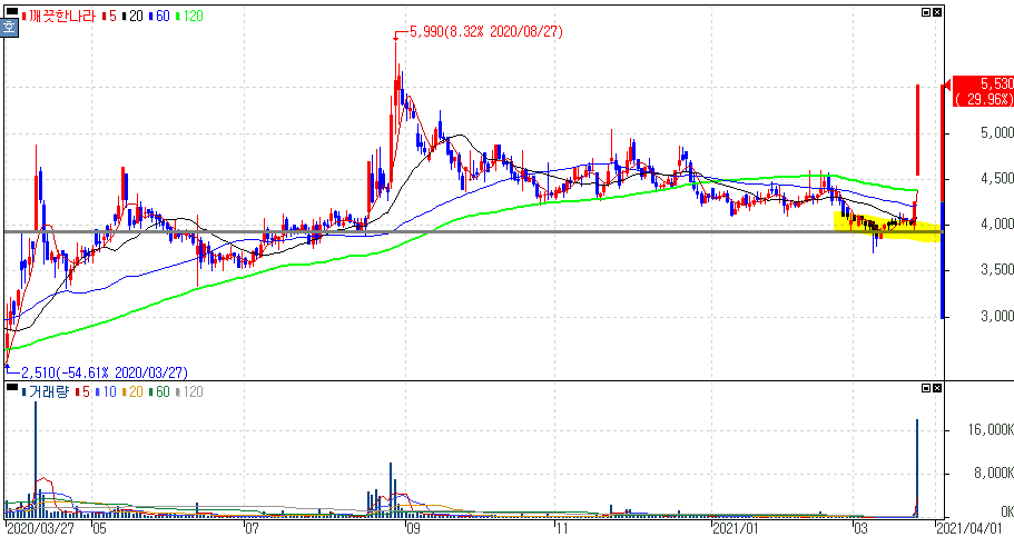 2021년 03월 25일 오늘의 상한가 종목 및 이유 :: 깨끗한나라우 썸에이지 승일 주가 외 윤석열 관련주