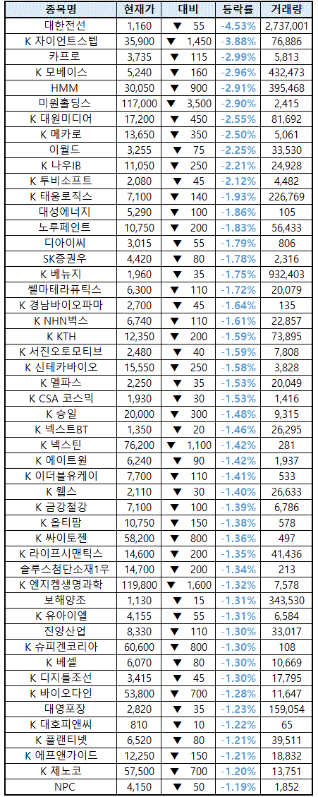 2021년 03월 29일 :: 시간외 하락종목