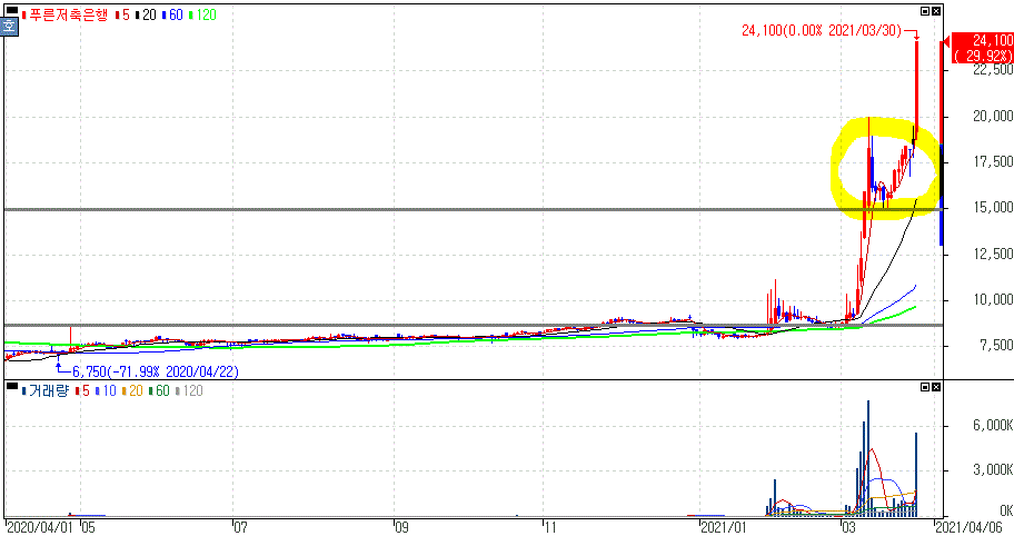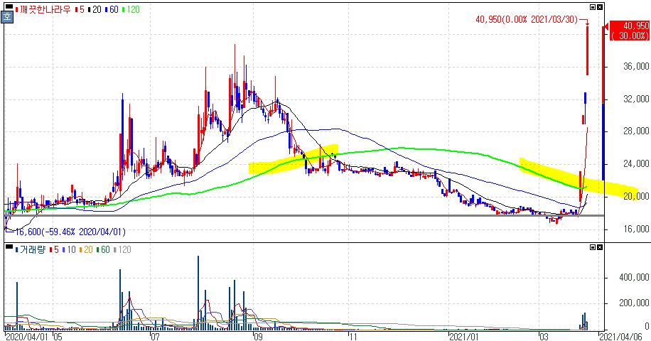 윤석열 전 검찰총장, 차기 대선 주자 지지율 첫 30%대 진입 모멘텀 지속에 상한가를 기록한 깨끗한나라우, 푸른저축은행, 부방 주가 입니다.