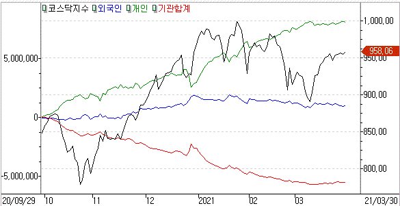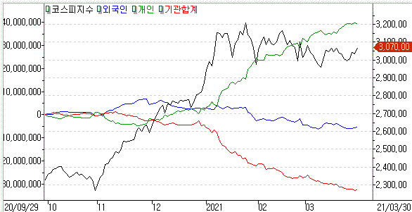 미국에서 블록딜 여파로 경계심이 있었지만 백신 보급에 따르는 경제 정상화 기대감이 커짐과 동시에 외국인과 기관의 순매수세 상승을 보였습니다.