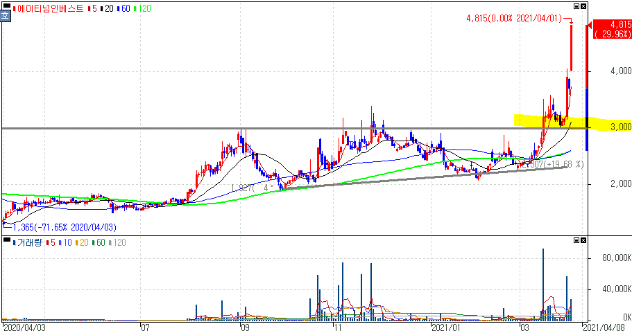 2021년 04월 01일 오늘의 상한가 종목 및 이유 :: 에이티넘인베스트 알로이스 케이피티유 NE능률 주가 외
