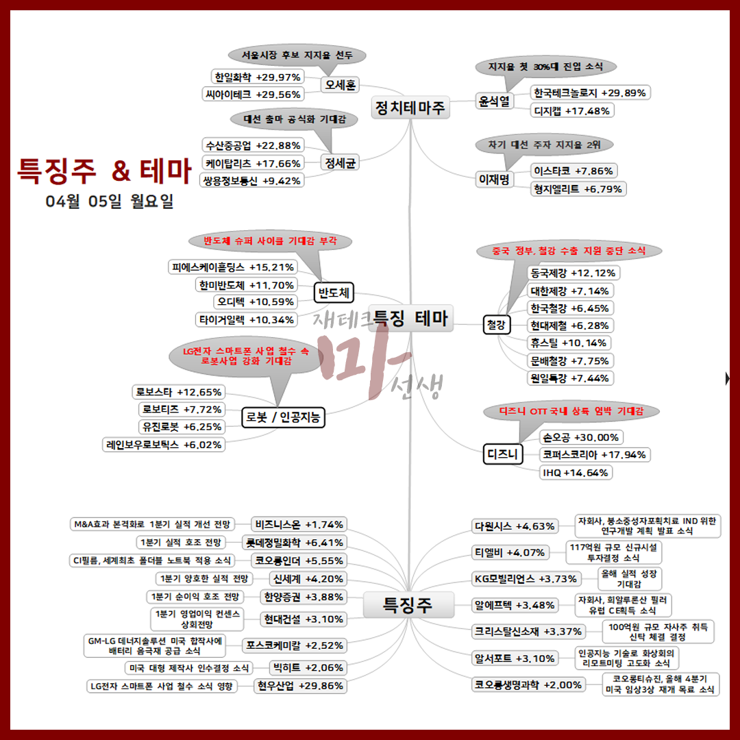 4월 5일 오늘의 상한가 종목 및 이유 :: 신화실업 씨아이테크 한국테크놀로지 손오공 현우산업 한