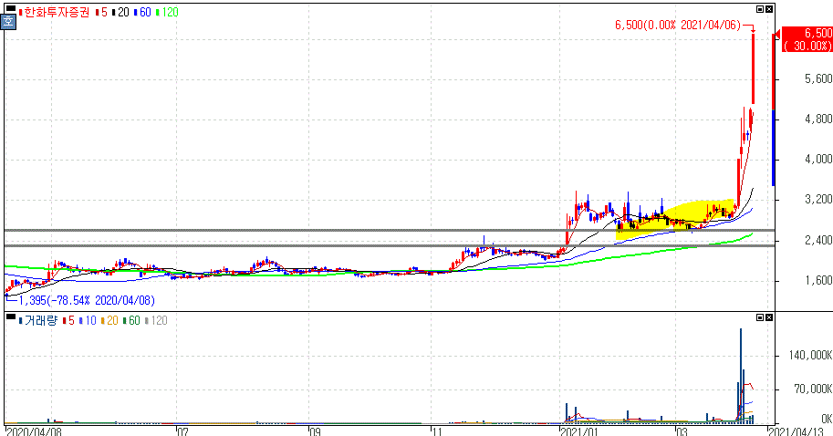 한화투자증권 주가 :: 2021년 04월 06일 오늘의 상한가 종목