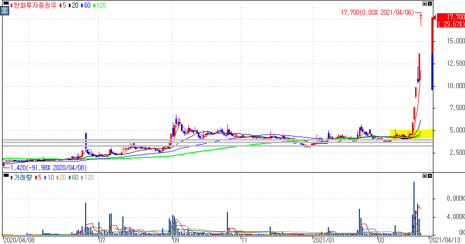 한화투자증권우 주가 :: 2021년 04월 06일 오늘의 상한가 종목