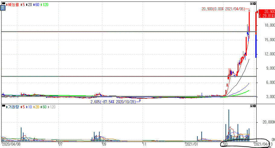 NE능륭 주가 :: 2021년 04월 06일 오늘의 상한가 종목