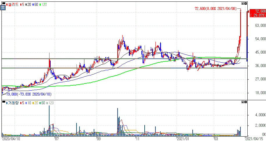 셀리드 주가 :: 2021년 04월 08일 오늘의 상한가 종목
