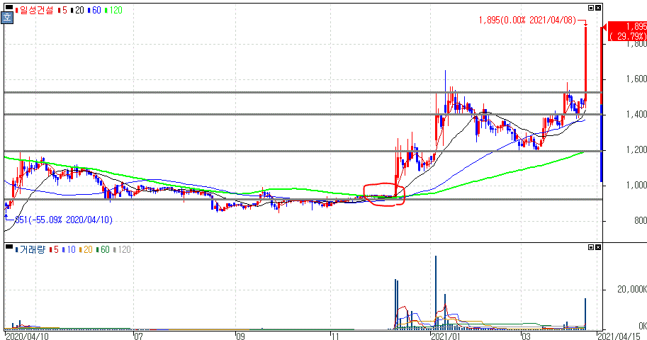 일성건설 주가 :: 2021년 04월 08일 오늘의 상한가 종목