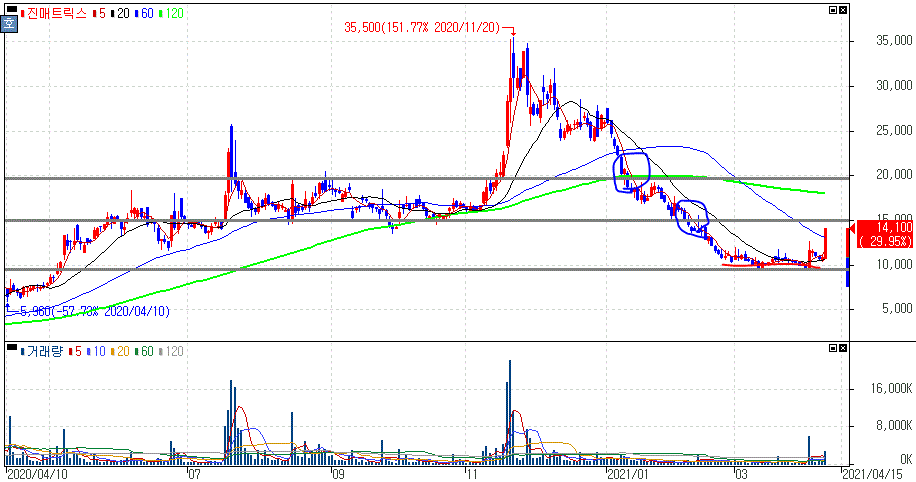 진매트릭스 주가 :: 2021년 04월 08일 오늘의 상한가 종목