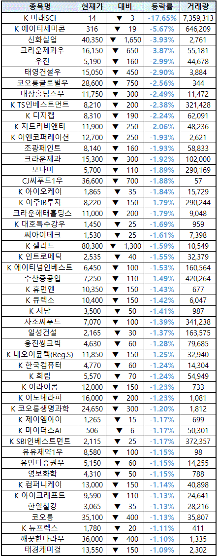 2021년 04월 09일 :: 시간외 하한가 및 하락종목
