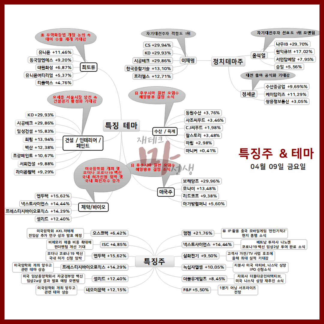 2021년 04월 09일 :: 정규장 주요 특징주 및 특징테마