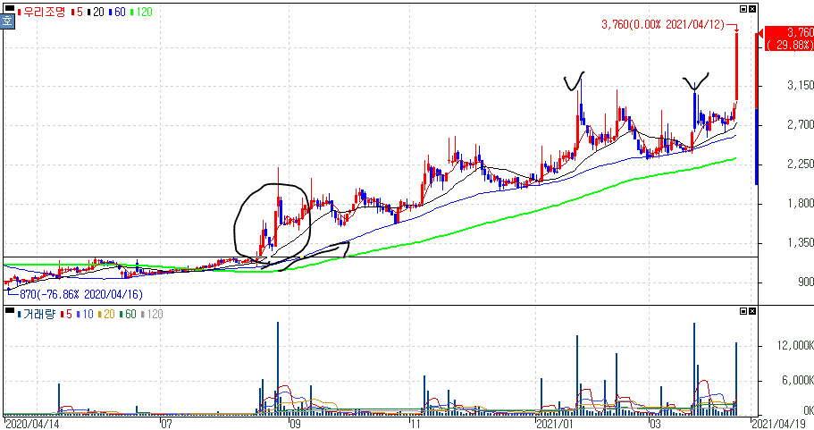 우리조명 주가 :: 2021년 04월 12일 오늘의 상한가 종목