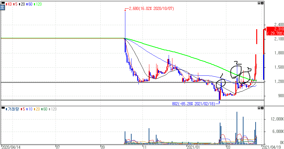물론 그동안 거래량이 적었던 종목이기 때문에 관심을 못 받는 경우도 있지만 종목을 보는 시각에 있어서 부각될 수 있는 중요한 지표을 가진 종목익도 합니다.