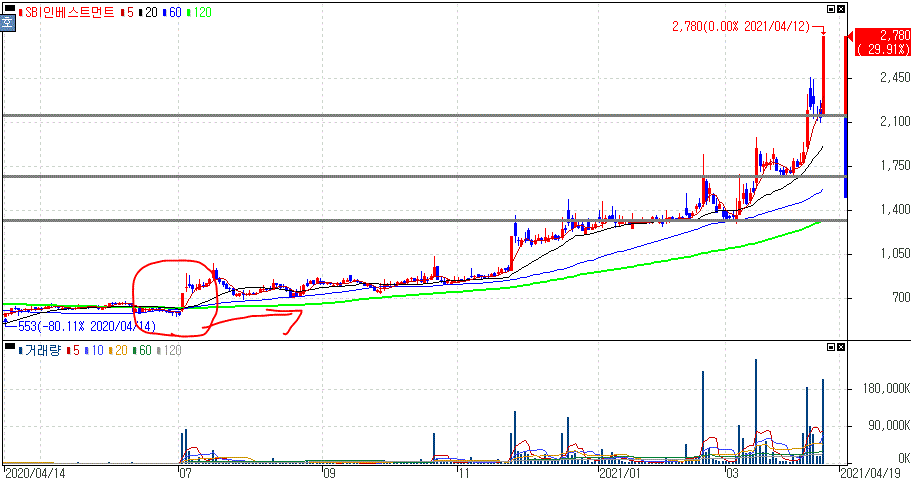 120일선 전 흐름에서 우선 어떤 흐름, 수급 등을 먼저 확인해보시면서 다양한 데이터와 조합해보시면 본인만의 좋은 전략도 세워보실 수 있을겁니다.