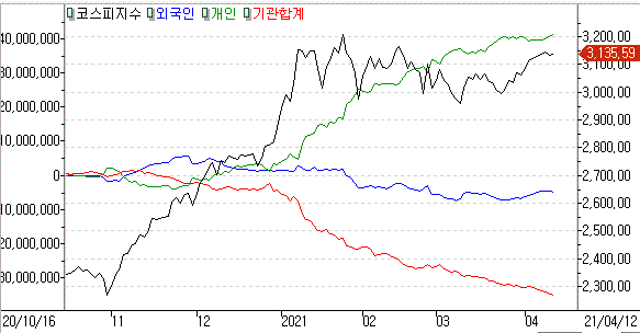 외국인 -3,247억 / 기관 -3,862억