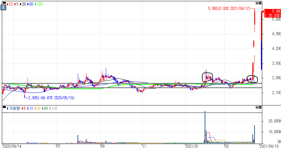 3거래일 연속 상한가를 기록하고 있는 CS는 지난주에도 말씀드렸지만 이재명 관련주로 주식공부하시는 분들은 지난 흐름들에 대해서 공부해보시라고 말씀드렸던 만큼 좋은 데이터로 쌓아두시길 바랍니다.