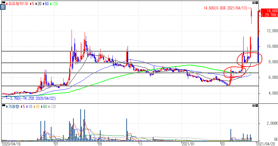 오세훈 서울시장이 정부에 자가진단 키트 도입 적극 검토촉구에 상한가를 기록한 유유제약, 유유제약1우, 유유제약2우B 주가 입니다.