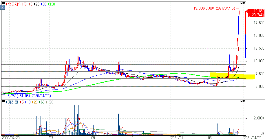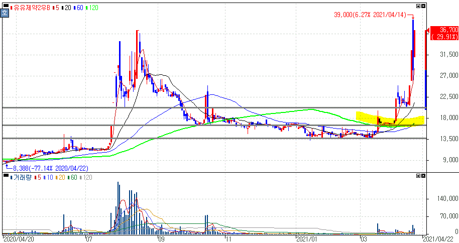 오세훈 서울시장이 제안한 코로나19 자가진단키트를 학교에 도입에 대한 전문가 의견을 들을 것이라는 교육부 장관 발언에 상한가를 기록하고 있는 유유제약1우, 유유제약2우B 주가 입니다.