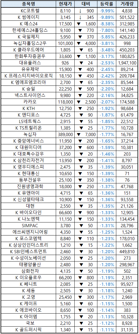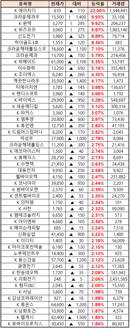시간외 단일가매매 종가 종목 확인시 단순 급등주 등락률만 볼 것이 아니라, '거래량'에 따르는 거래대금도 판단하면서 보는 것이 중요합니다.