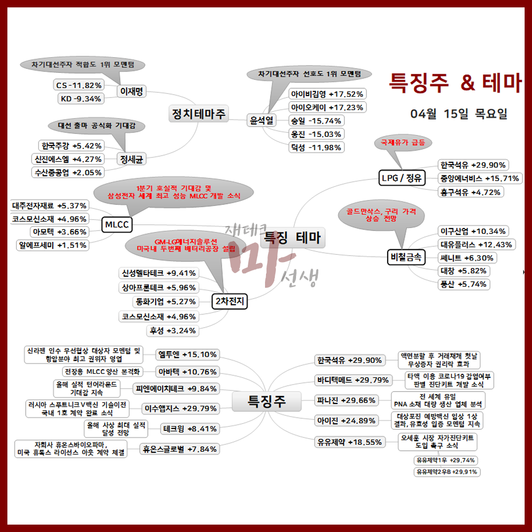 4월 15일 오늘의 상한가 종목 및 이유 :: 바디텍메드 한국석유 이수앱지스 주가 외