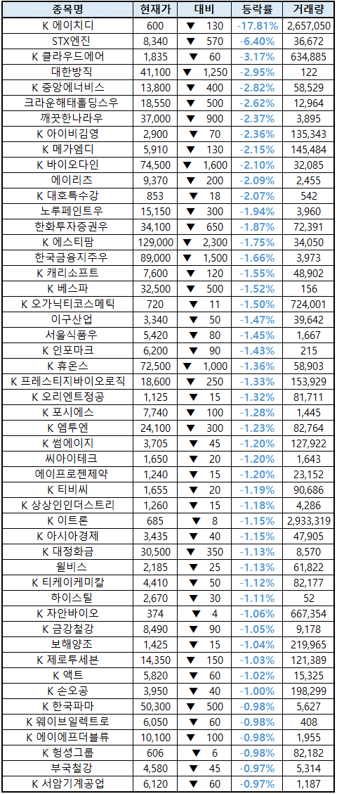 시간외 단일가매매 종가 종목 확인시 단순 급등주 등락률만 볼 것이 아니라, '거래량'에 따르는 거래대금도 판단하면서 보는 것이 중요합니다.