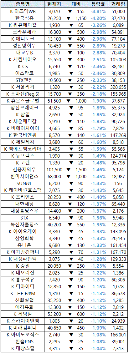 한국석유 주가 -4.20%