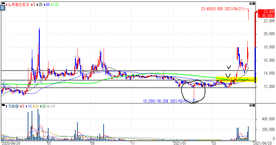 노루페인트우 주가 :: 2021년 04월 21일 오늘의 상한가 종목