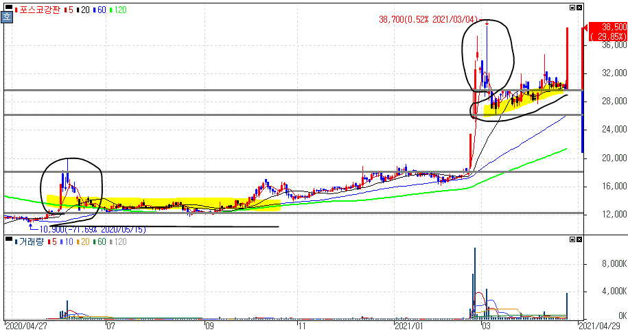 2021년 04월 22일 오늘의 상한가 종목 및 이유 :: 코리아에셋투자증권 크루셜텍 한화에스비아이스팩 포스코강판 이아이디 이트론 주가 외