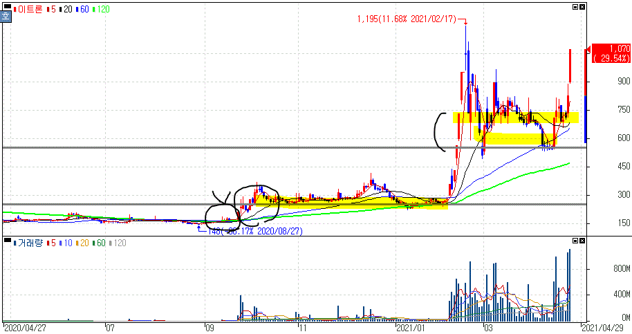 어제도 말씀드렸다시피 급등을 보이면서 보여지는 주가 차트만 볼 것이 아니라, 앞당겨 주가 흐름을 파악하는 것도 중요합니다.