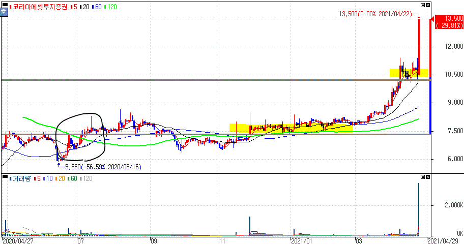 러시아 백신 컨소시엄 참여 큐라티스 지분 부각에 상한가를 기록한 코리아에셋투자증권 주가 입니다.