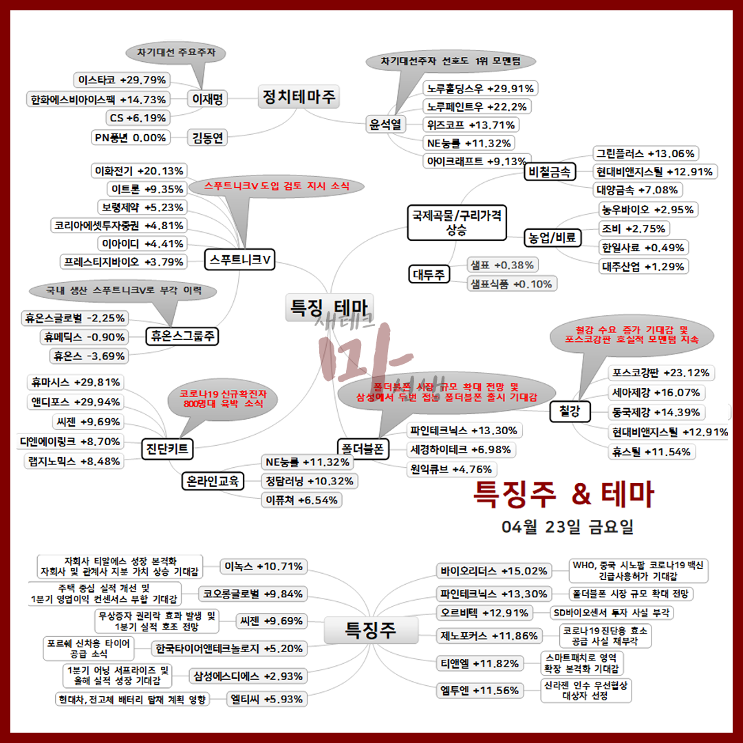 4월 23일 주요 특징주 및 특징테마