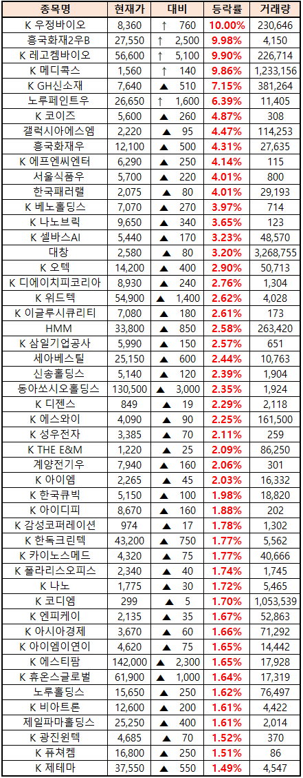 시간외 단일가매매 종가 종목 확인시 단순 급등주 등락률만 볼 것이 아니라, '거래량'에 따르는 거래대금도 판단하면서 보는 것이 중요합니다.