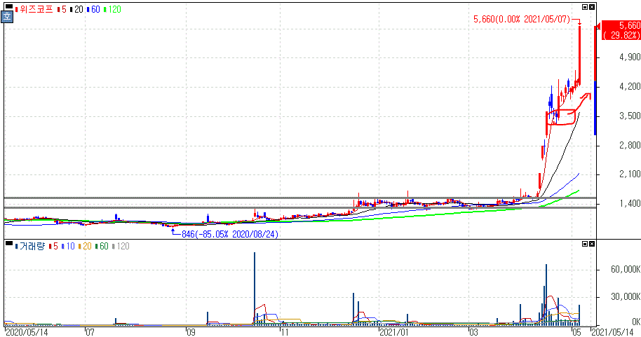 위즈코프 주가 :: 2021년 05월 07일 오늘의 상한가 종목