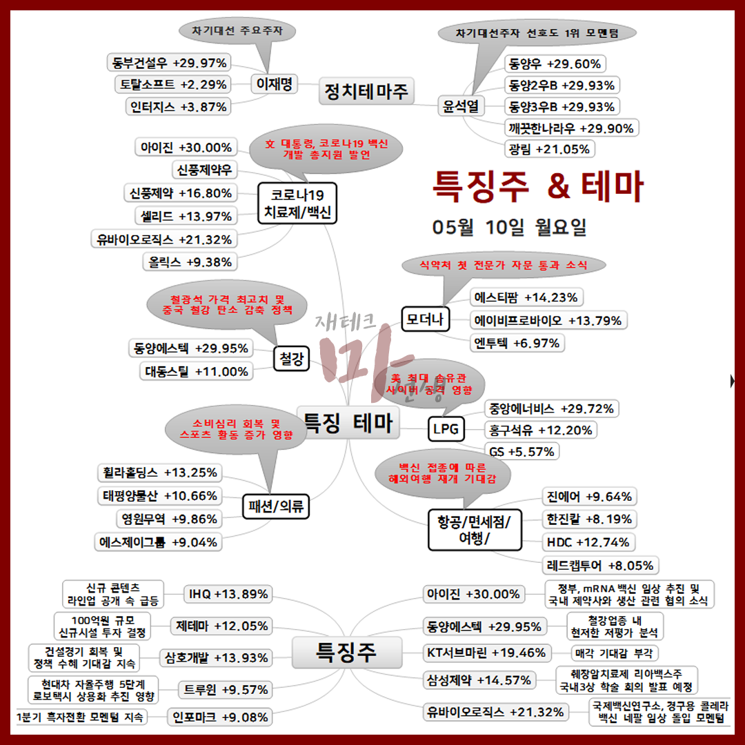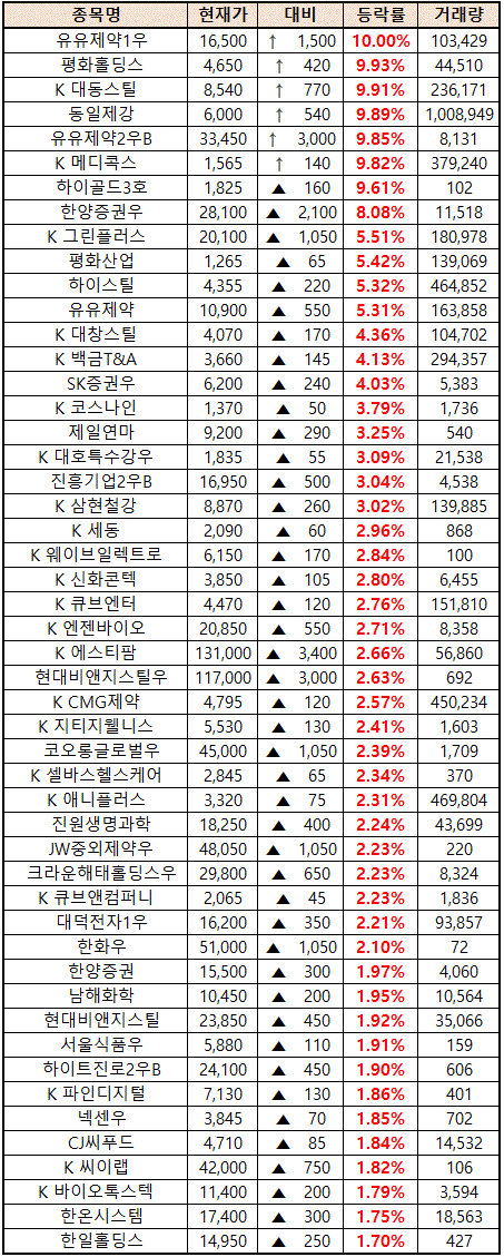 2021년 05월 10일 시간외 상한가 상승종목 및 이유 :: 유유제약 평화홀딩스 대동스틸 주가 외 특징주