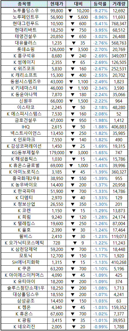 시간외 단일가매매 종가 종목 확인시 단순 급등주 등락률만 볼 것이 아니라, '거래량'에 따르는 거래대금도 판단하면서 보는 것이 중요합니다.