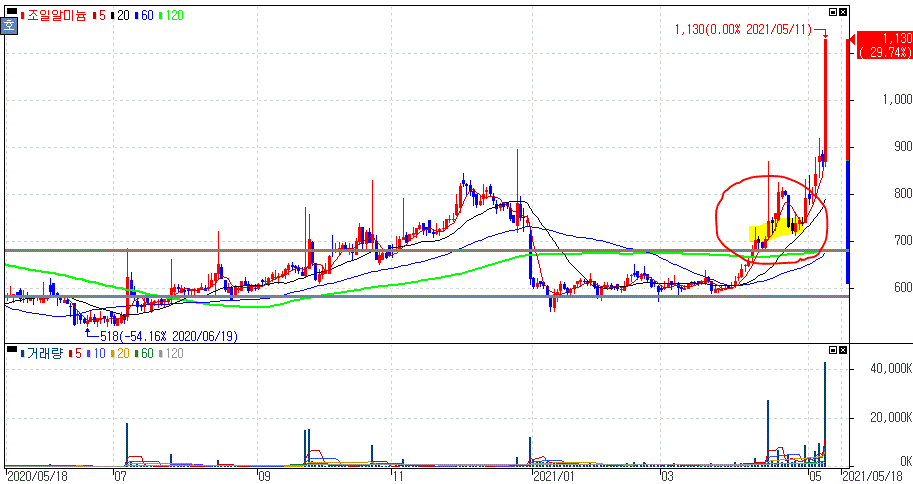 2021년 05월 11일 오늘의 상한가 종목 및 이유 :: 조일알미늄 대호에이엘 바이오리더스 피제이메탈 이루온 주가 외