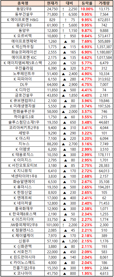 시간외 단일가매매 종가 종목 확인시 단순 급등주 등락률만 볼 것이 아니라, '거래량'에 따르는 거래대금도 판단하면서 보는 것이 중요합니다.