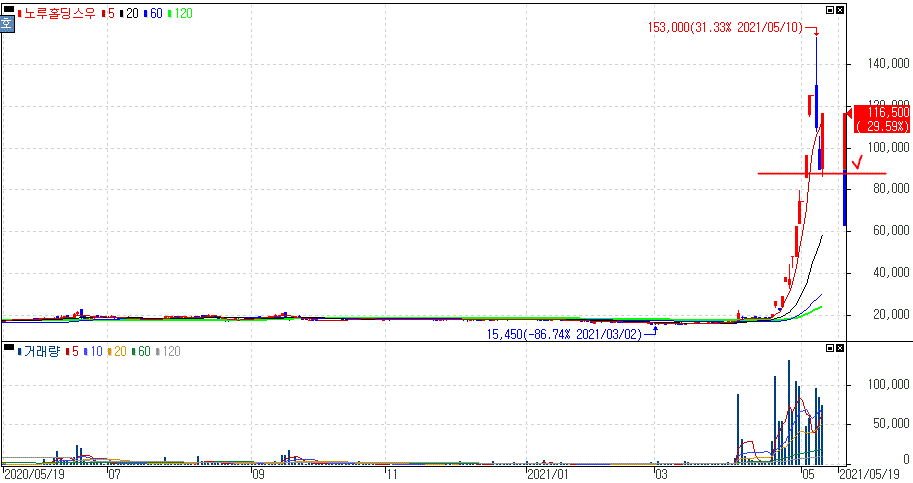 노루홀딩스우 주가 :: 2021년 05월 12일 오늘의 상한가 종목