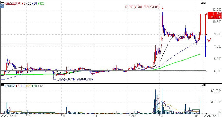 포스코엠텍 주가 :: 2021년 05월 12일 오늘의 상한가 종목