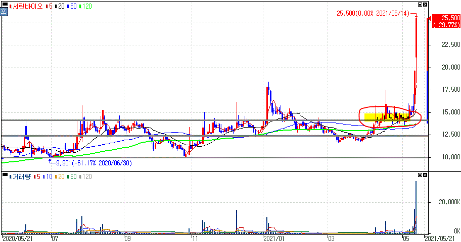 서린바이오 주가 :: 2021년 05월 14일 오늘의 상한가 종목